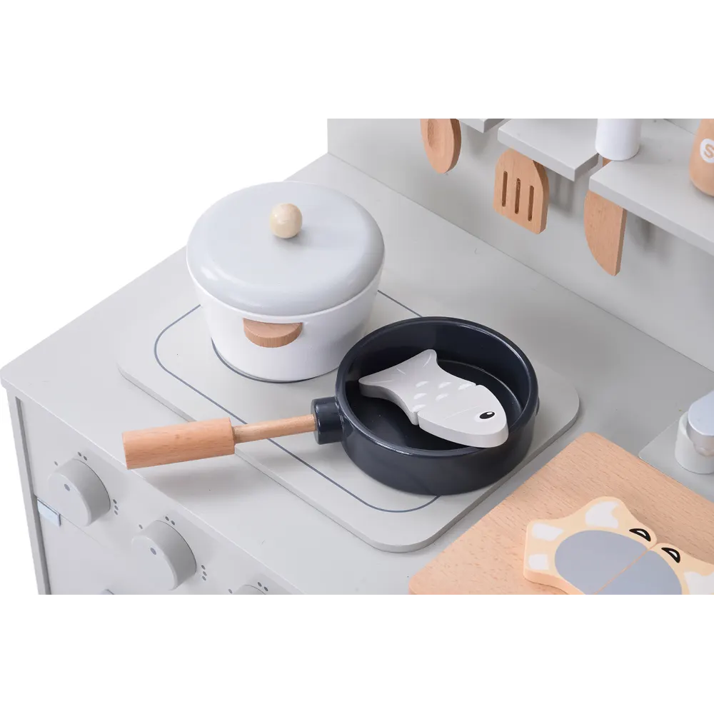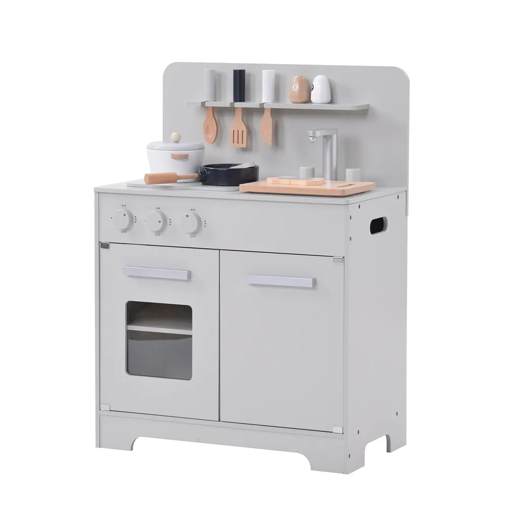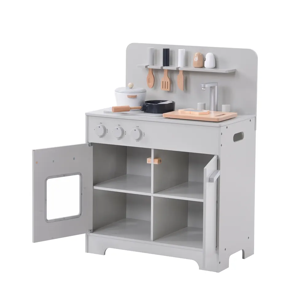 おままごと キッチン 木製 調理器具付き ままごとセット 誕生日 台所 知育玩具 子供用 子供 収納 まねっこ コンロミニキッチン おもちゃキッチン キッズ ベビー プレゼント【グレー】